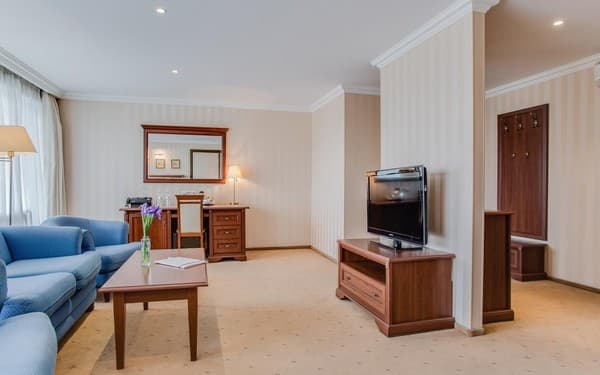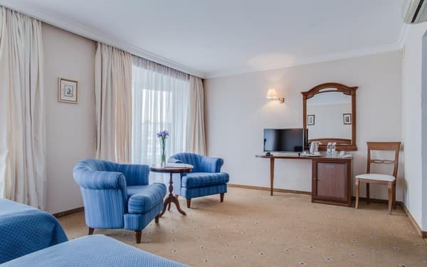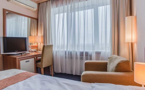 В гостинице разместились номера полулюкс и люкс, здесь вы найдете электрочайник, халат, тапочки, сейф для сохранности вещей. В некоторых номерах вы сможете воспользоваться джакузи.
