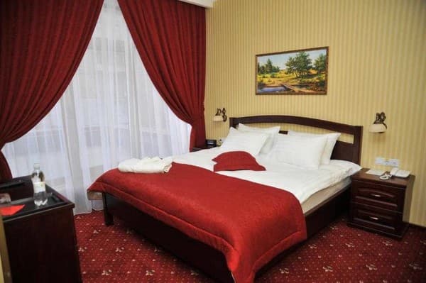 54 номера оформлены в классическом стиле, все они оборудованы современной мебелью и новой техникой. Для комфортного пребывания, в каждом номере вы найдете современный телевизор, холодильник, сейф для сохранности личных вещей, доступ к сети интернет.